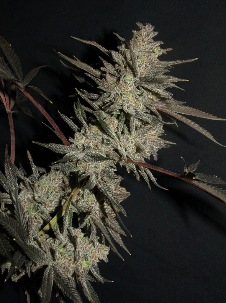 Thought to have originated in California, Blue Dragon is a cross of two classic strains, the indica-dominant Blueberry and sativa-dominant Sour Diesel. The flowers of this hybrid often turn dark purple and are covered in bright orange pistils and white trichomes. Sometimes measuring over 24% THC, Blue Dragon is very potent, giving users an intensely