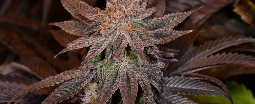 This mostly indica strain is a mix of Afghani and Blackberry strains and has beautiful dark purple buds with orange hairs. Plants will flower at 7-8 weeks and are not particularly high yielders, but the dense, hard nugs have crystals throughout. Blackberry Kush tends to have a hashy, jet fuel smell and taste that is