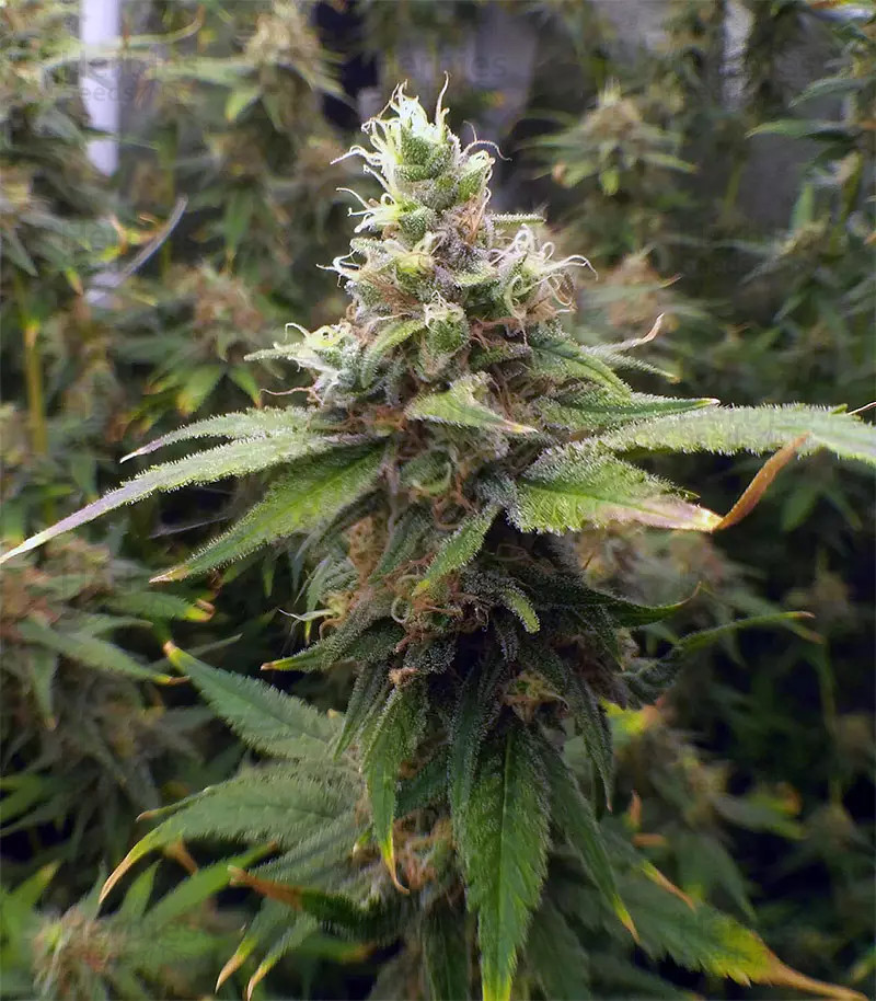 Tangerine is a sativa-dominant hybrid, a 4th generation daughter of Ch9 Aroma. The fruity tangerine aroma is accompanied with notes of mango and pineapple. Indoor or outdoor grows can expect flowers between 7 and 8 weeks.