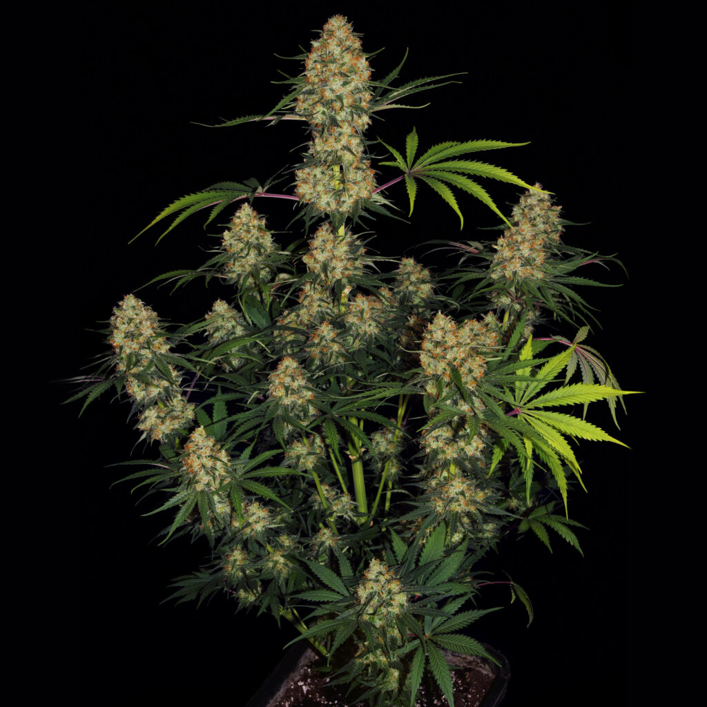 Nordle, named after Howard Marks’ code word for “hashish,” is a high-CBD indica cross between Afghani and Skunk. With a CBD content as high as its THC concentrations, Nordle delivers mild effects that relieve pain and muscle spasms. Nordle, which flowers in 8 to 10 weeks, produces dense, conic buds with a pungent fruity and