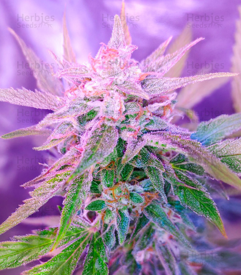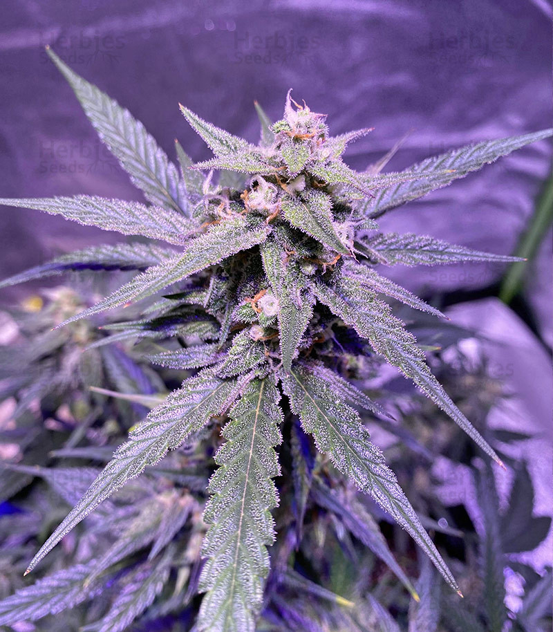 Berry Bomb is a hybrid cross between Blueberry and Bomb #1 that shows off its indica-leaning genetics through powerful sedation. A sweet blueberry and earthy pine flavor launches you into Berry Bomb’s potent full-body effects, which can easily help you transition into a restful night or an afternoon nap. According to its breeders at Bomb Seeds, Berry Bomb sometimes expresses itself in cool hues of blue in lower temperatures. Its flowers explode into growth early on, stretching especially tall in outdoor gardens. Berry Bomb thrives in screen of green (SCROG) setups, and indoor plants finish their flowering in a short 6 to 8 weeks.