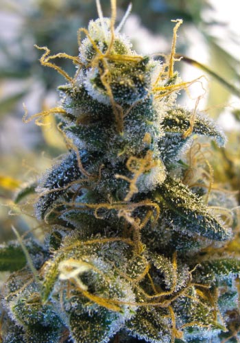 Blue Mystic is as mysterious as its name indicates, with unknown genetics that definitely contain some Blueberry and possibly some Skunk or Northern Lights. These plants flower between 7 to 9 weeks, with light blue coloring that can make the trichome-covered buds look almost gray. It does have the distinctive Blueberry aroma, but it’s fairly subtle compared to other strains, making it a good choice for growers or patients who need discretion.