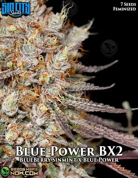 The indica-dominant Blue Power is one of Sin City Seeds’ signature strains, bred from Sour Double, Master Kush, The White, and Blue Moonshine genetics. Cherished for its fragrant buds, Blue Power offers a sweet fusion of lemon and berry flavors with an earthy finish. It should be noted that another genetic variation released by Vision Seeds crosses Blueberry, White Widow, and Skunk #1. This rendition is described as a happy and uplifting indica that helps focus the mind while fighting stress.