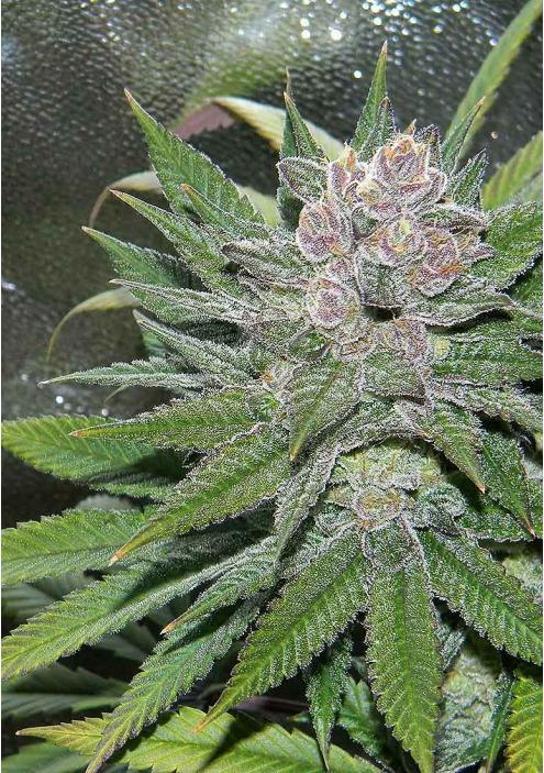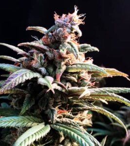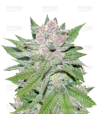 With a smell distinctly of blueberry cheesecake, this strain was bred from Blueberry and Cheese. Flowers are known to be lime green and dark violet in color with orange hairs and a large coat of crystals.