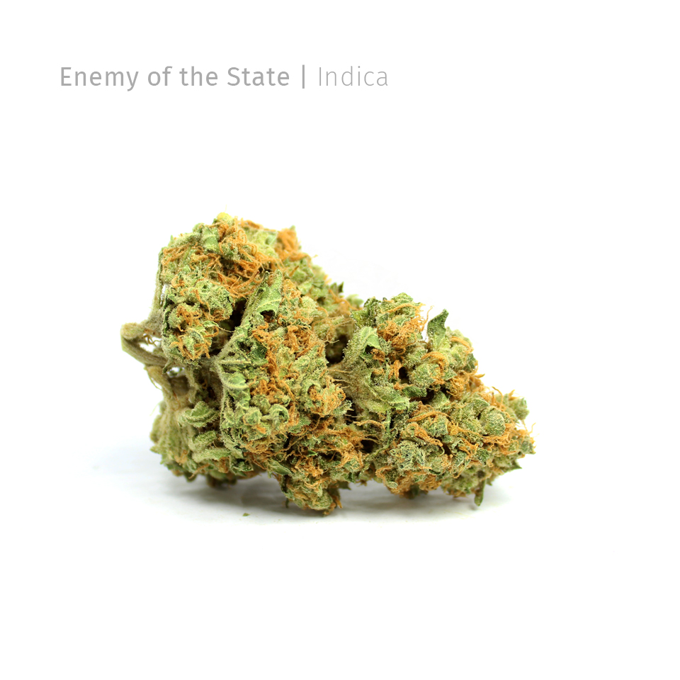 Enemy of the State by Super Strains is an old school indica whose genetics have been lent to several other successful strains over the years. While the strain’s genetics remain unknown, the musky aroma and heavy mental and physical sedation suggests indica-dominant lineage. Enemy of the State’s primary claim to fame is its genetic contribution to the Amnesia family line as well as its generous yields. Enjoy this strain later in the evening to maximize its sedative effects and to help curb minor pain and restlessness.
