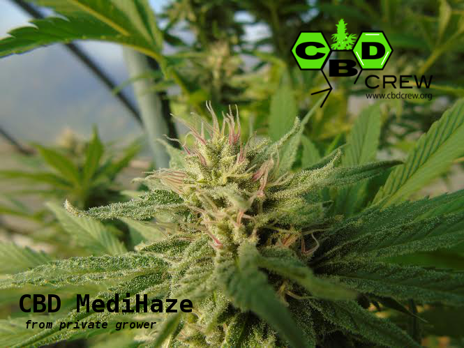 MediHaze (or CBD Medi Haze) is an 80/20 sativa-dominant strain bred by CBD Crew that crosses genetics from Super Silver Haze, Neville’s Haze, and an undisclosed CBD-rich parent. Its THC to CBD ratio typically comes out 1:1, but some seeds will offer a doubled CBD content. THC and CBD’s synergy provide relief to a variety of symptoms, some of which include pain, inflammation, and anxiety. Pine, mint, and spice aromas burst from MediHaze buds in a fragrant introduction to its clear-headed, uplifting effects.