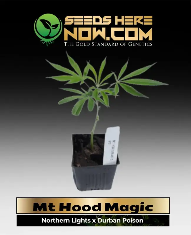 Thought to be exclusive to Portland, Oregon dispensary Five Zero Trees, Mt. Hood Magic is a cross between Northern Lights #5 and Durban Poison. There a few different phenotypes available: two are indica-dominant and more resemble the NL5 portion of its genetics, testing at 17% and 14% THC; and one is sativa-dominant and similar to Durban Poison, testing at 19% THC.
