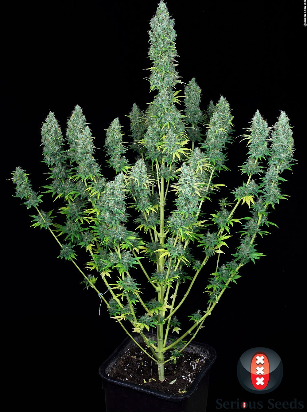 Serious Happiness by Serious Seeds is a hybrid cross of THC-dominant genetics. Created by crossing a potent AK-47 mother with Warlock, a stress-relieving indica-dominant hybrid, Serious Happiness stays true to its name, offering a deep body buzz and a joyous state of mind. This strain has longevity as well as a stable hybrid growth structure that is easy to manicure and maintain. It’s also a generous producer, winning the 2016 Master Seed Cup in Spain for “Most Productive.” The terpene profile is fruity with touches of spice and sugar.
