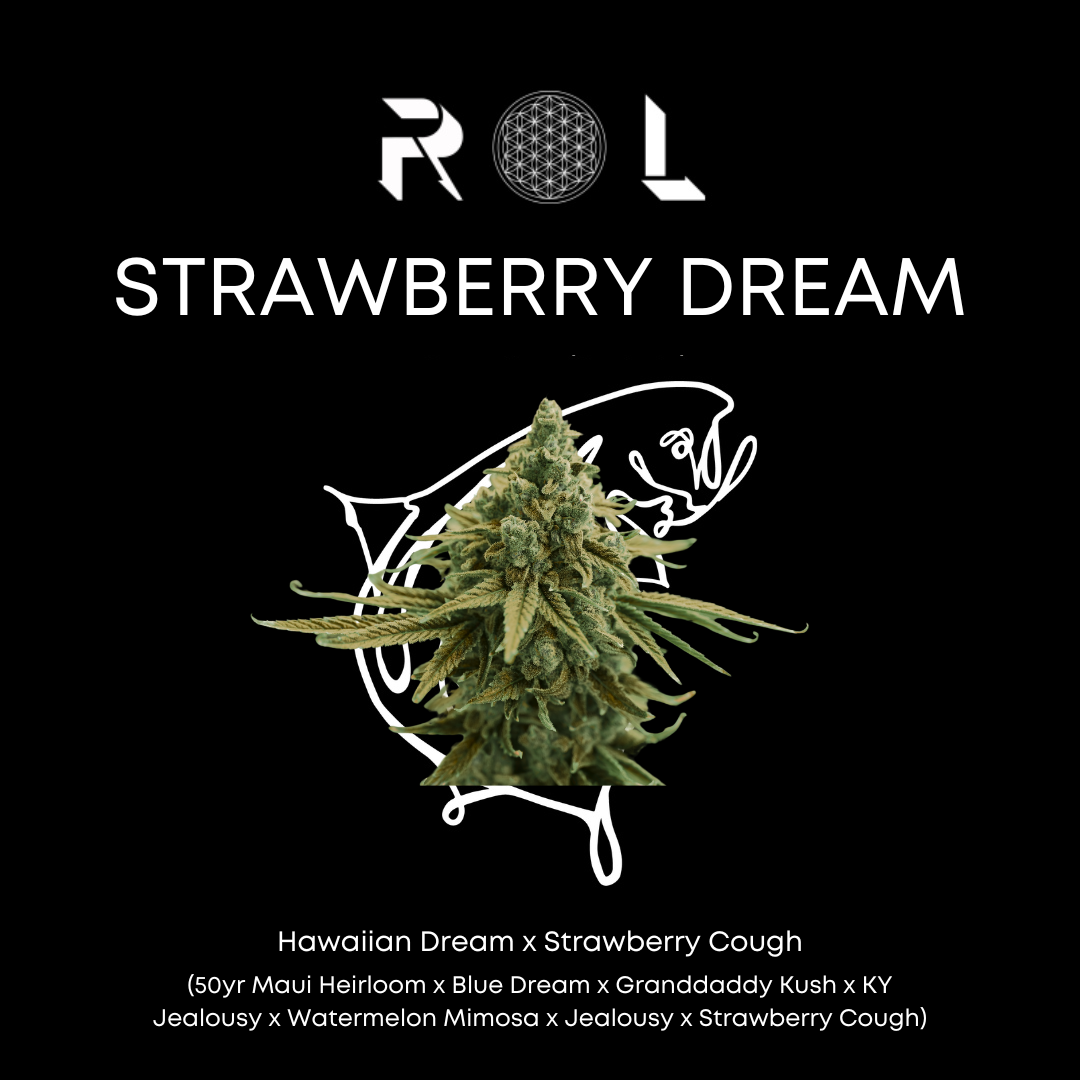 Strawberry Dream is a hybrid cross of the Blue Dream and Strawberry Cough strains. With a potency similar to Blue Dream and a smell of sweet strawberries, this sativa-dominant strain will bring considerable head effects.